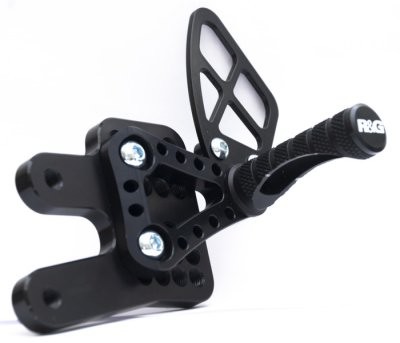 Lábtartóink széles körű és nagyon pontos állítási lehetőségekkel rendelkeznek, hogy minden pilóta be tudja állítani magának a tökéletes pozíciót. Tervezéséből fakadóan könnyű felszerelni. Felülete fekete szinterezett, fehér R&G grafikákkal a lábtartón és a pedál-részeken. A lábtartók speciális kiképzést kaptak, aminek köszönhetően kivételes tapadást adnak a csizmának még a legtrükkösebb helyzetekben is. A készlet tartalmazza a használati és szerelési útmutatót is.