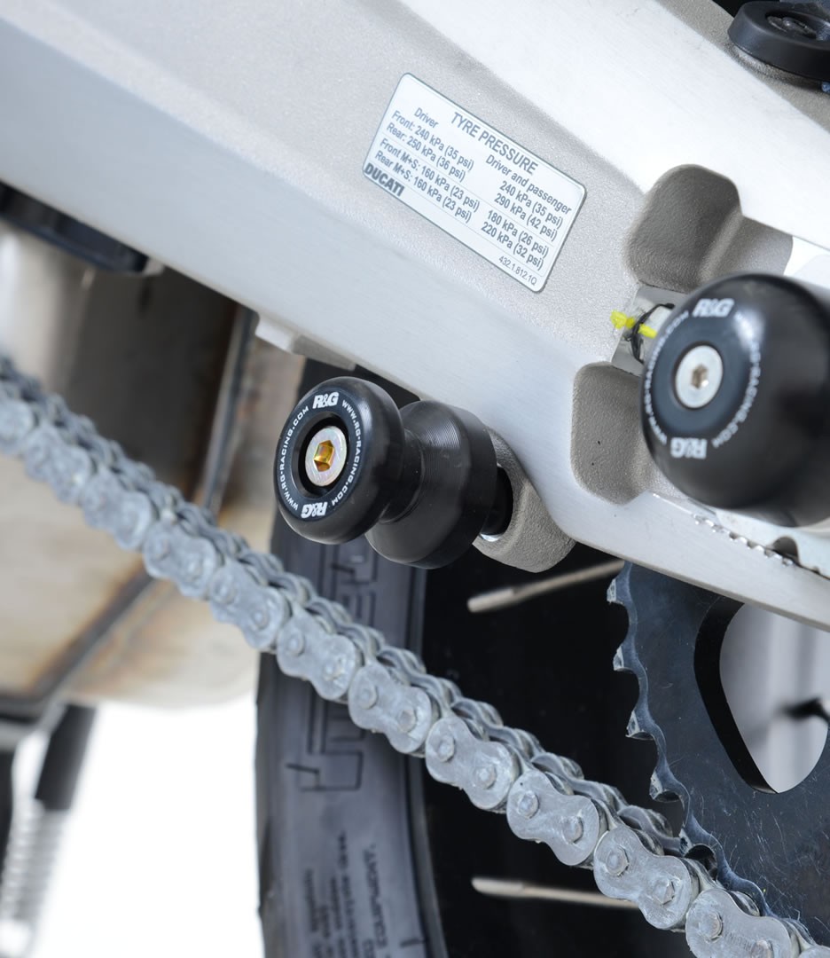 Az R&G emelőszemek rögzítése közvetlenül a lengőkarra történik. Ezek a hagyományosnál nagyobb emelőszemek, így védelmi szerepet is betöltenek. Egy esésnél megvédik magát a lengőkart, a féktárcsát, a lánckereket, és minden mást is ami itt helyezkedik el. Természetesen emellett lehetővé teszi a motor emelését is, hogy tudd szervizelni és tisztítani.