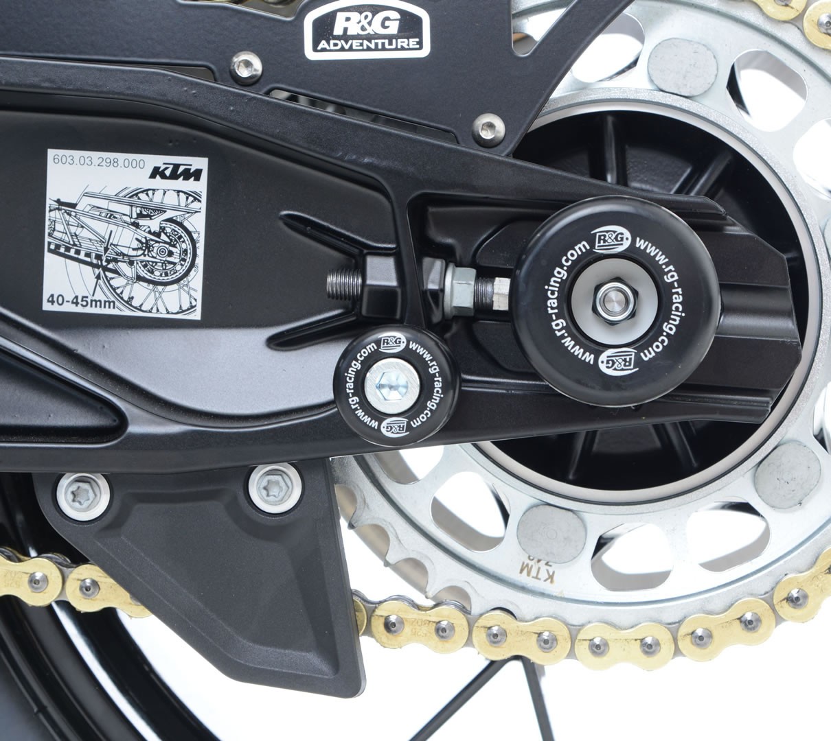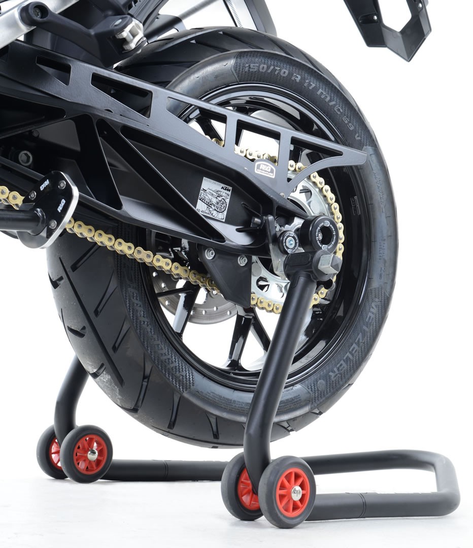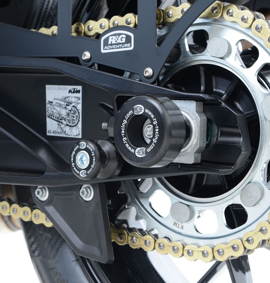 Az R&G emelőszemek rögzítése közvetlenül a lengőkarra történik. Ezek a hagyományosnál nagyobb emelőszemek, így védelmi szerepet is betöltenek. Egy esésnél megvédik magát a lengőkart, a féktárcsát, a lánckereket, és minden mást is ami itt helyezkedik el. Természetesen emellett lehetővé teszi a motor emelését is, hogy tudd szervizelni és tisztítani.