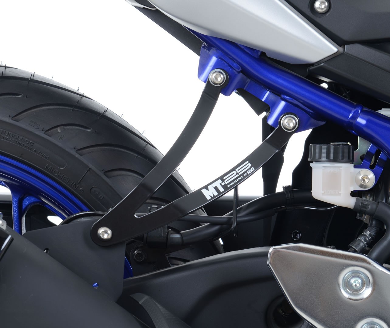 Az R&G kipufogó tartó konzolok 6mm-es, a repülőgépgyártásban is használatos alumíniumból készülnek, formájuk modern és sportos, igazi verseny kinézetet ad a motorodnak.